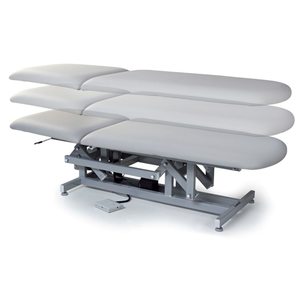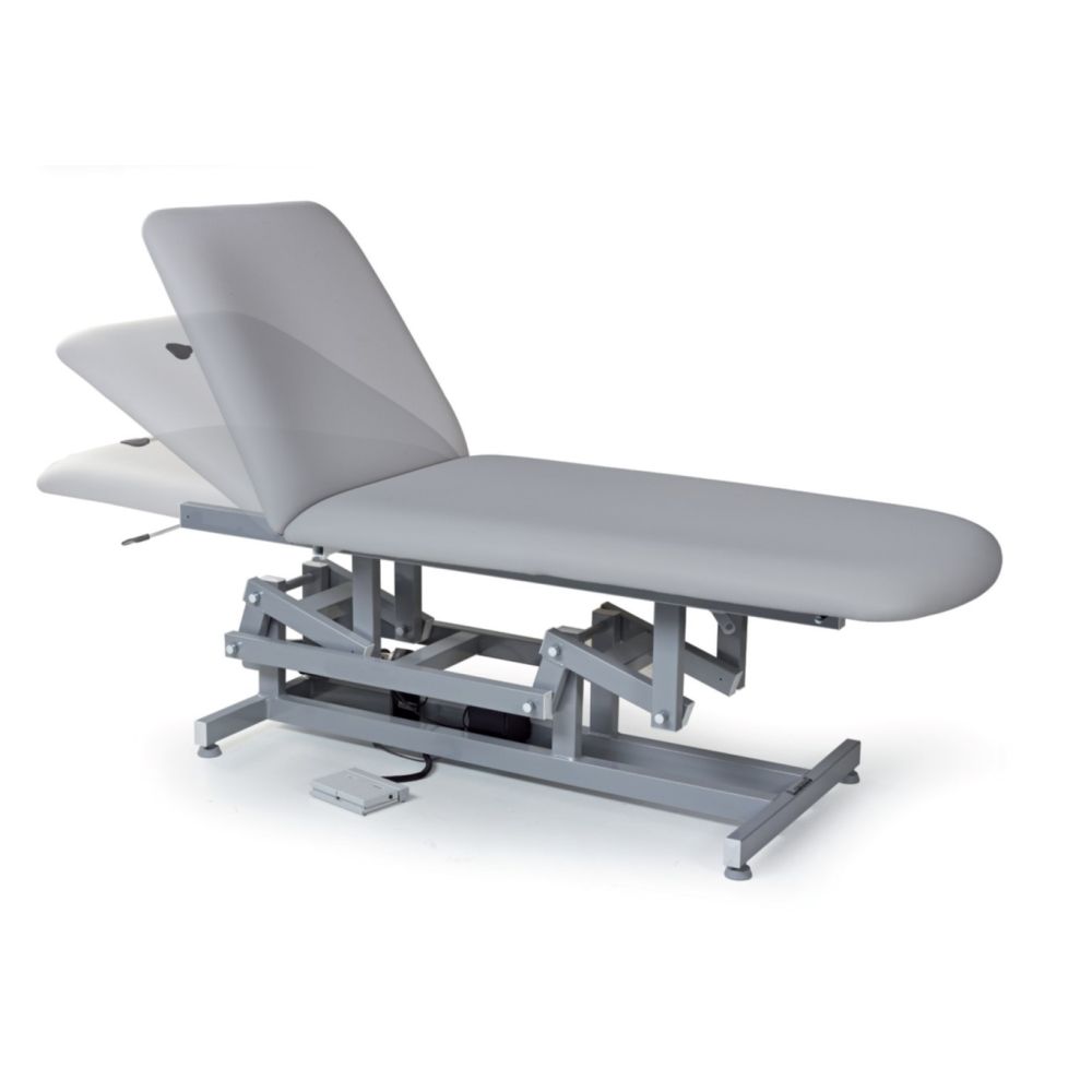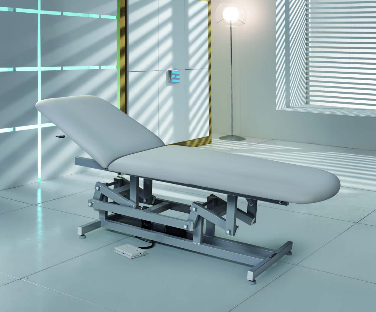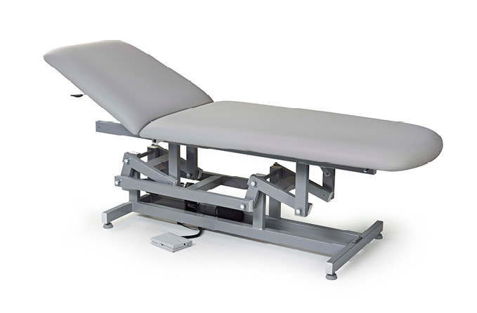 Для удобства использования применяется электродвигатель, поднимающий и опускающий спинку без усилий со стороны мастера. Матрас эргономичный, не имеет швов, благодаря чему обеспечивает еще большую гигиеничность во время всех процедур.