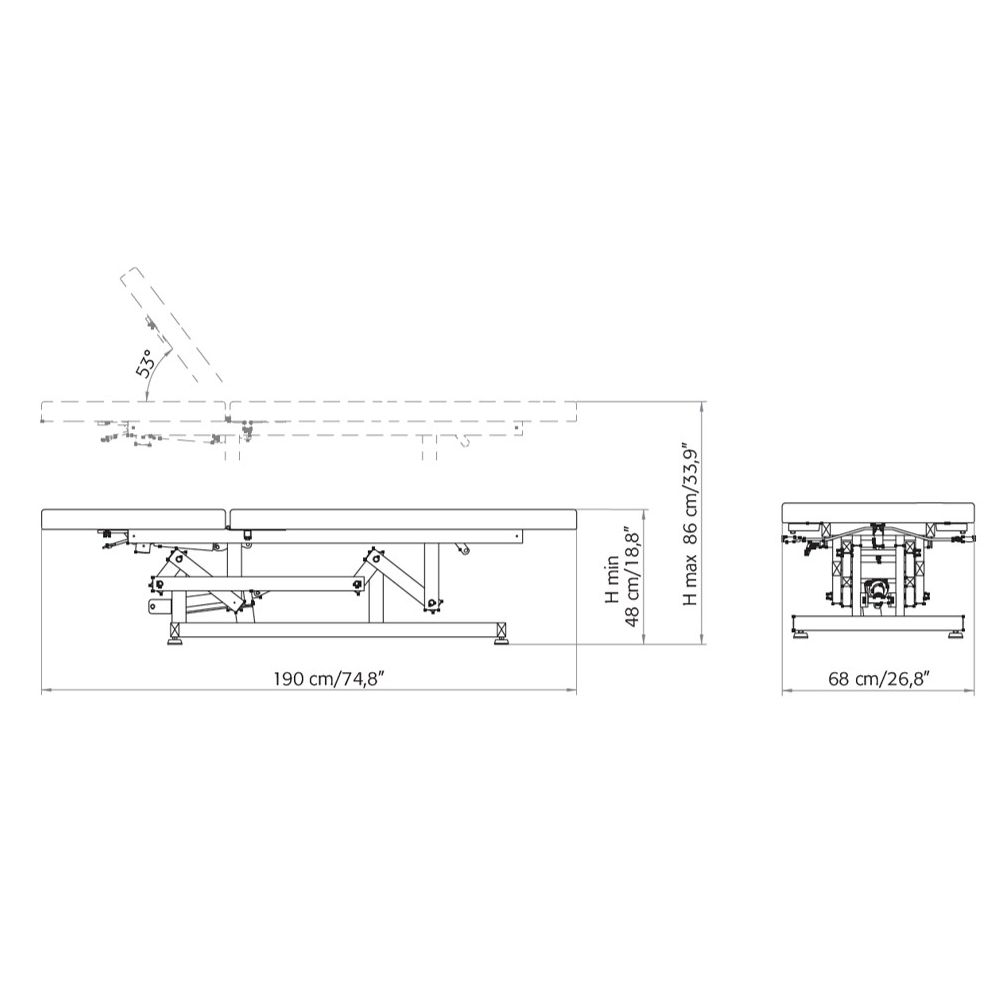 За счет пневматической пружины регулировка положения становится еще проще и не требует физической силы. А гибкость настроек позволяет подстраивать положение для каждого клиента и под конкретные процедуры. Предусмотрено более 25 расцветок матраса на выбор – можете выбрать любой подходящий.- Длина 190 см